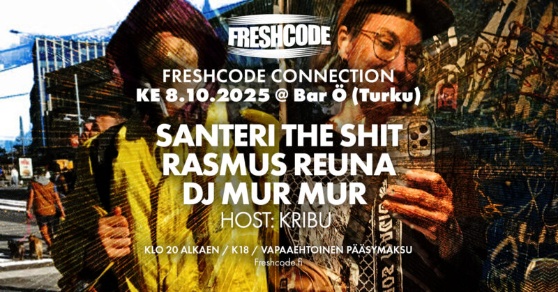 FRESHCODE CONNECTION: SANTERI THE SHIT, RASMUS REUNA, DJ MUR MUR @ Bar Ö, Ke 8.10.2025 25.9.2025 FRESHCODE CONNECTION: SANTERI THE SHIT RASMUS REUNA DJ MUR MUR... Lue lisää »