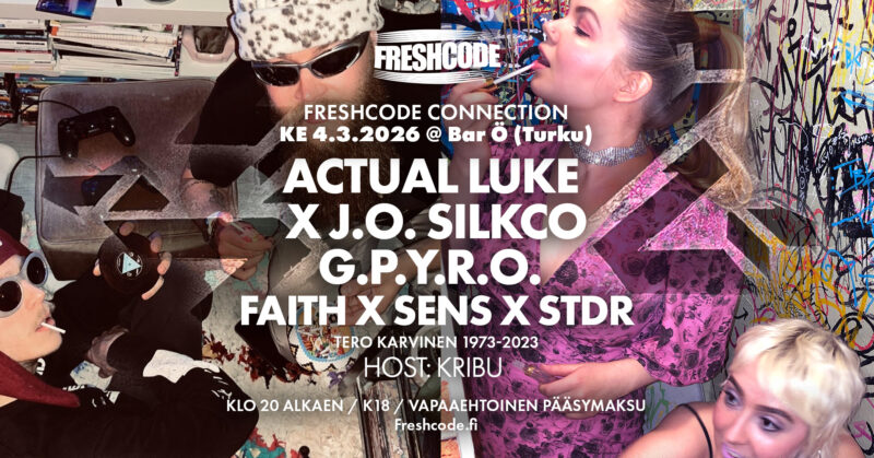 FRESHCODE CONNECTION: ACTUAL LUKE X J.O. SILKCO, G.P.Y.R.O., FAITH / SENS / STDR (1973-2023) @ Bar Ö, Ke 4.3.2026 24.2.2026 FRESHCODE CONNECTION:ACTUAL LUKE X J.O. SILKCO, G.P.Y.R.O., FAITH / SENS... Lue lisää »